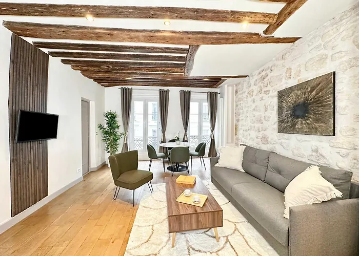 Den här lägenheten ligger i distriktet Le Marais och cirka 25 minuters gångavstånd från Fragonard Scribe Museum. 2 km från lägenheten hittar du Notre-Dame. Du kan också ta en promenad till Gaite Lyrique Theatre eller Konsthantverksmuseum.